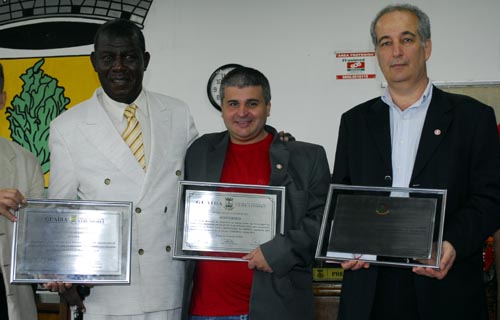 Giovanni Luigi (D), com Escurinho e o cônsul de Guaíba; todos homenageados