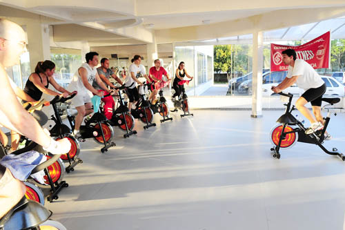 Na corrida pela queima das indesejáveis gorduras, a academia do Internacional proporcionou ao seus usários uma nova forma de atingir esta meta: aulas de spinning. Há mais de um mês, a Inter Fitness adquiriu bicicletas estacionárias, bem parecidas das que pode-se ver nas ruas, diferentes das tradicionais ergométricas das salas de musculação, para promover esta nova modalidade de treinamento.