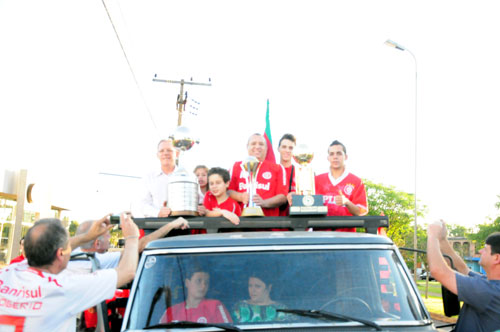 As taças da Tríplice Coroa, Libertadores, Mundial e Recopa, abrilhantaram as ruas de Santo Angelo
