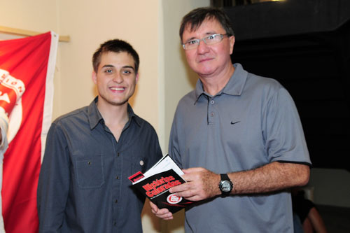 Telmo Zanini (D), jornalista da TV Globo e Sportv, ao lado de Luiz Barbará, veio do Rio participar do lançamento