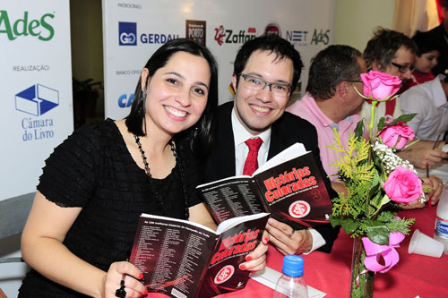 Adriana Montes (E) e Aleco Mendes, organizadores do Histórias Coloradas 3, receberam autores e torcedores