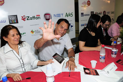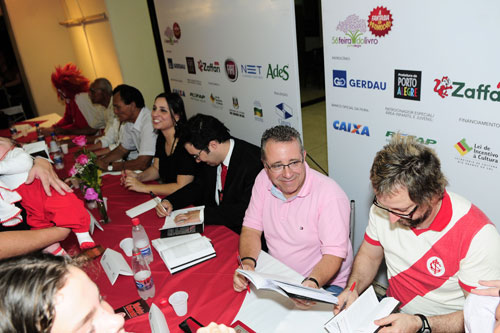 Orquestra Editora e os autores homenagearam o patrono da Feira do Livro 2010 Paixão Côrtes (D)