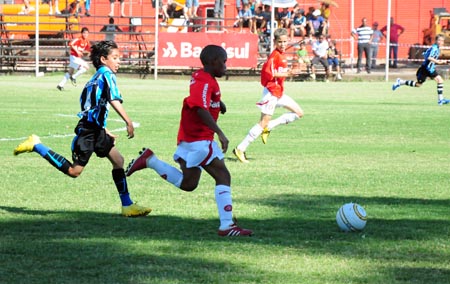 A equipe Sub-11 do Internacional recebeu o Grêmio na tarde desta segunda-feira, pela oitava rodada da fase de grupos do Campeonato Gaúcho LIGAFA. O time colorado venceu o rival por 2 a 0 no suplementar do Beira-Rio, com gols de Brenner e Leonardo, e garantiu a liderança da fase classificatória da competição. O grupo colorado, comandado pelo técnico Wilson da Rosa, é o mesmo que conquistou a Taça Primavera, em Alegrete, no mês de outubro e agora busca o título regional.