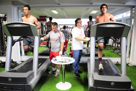 Todos os jogadores passaram por testes na esteira da sala de musculação do vestiário profissional pela manhã. Os médicos coletaram amostras de sangue dos atletas durante o exercício para mensurar o desgaste fisico. A partir destes dados, a comissão técnica poderá dosar de forma individual a carga de treinos para cada jogador.