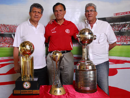 Taças das principais conquistas e ex-goleiros Benitez (E) e Manga (C) e o ex-zagueiro Bibiano Pontes foram outras atrações
