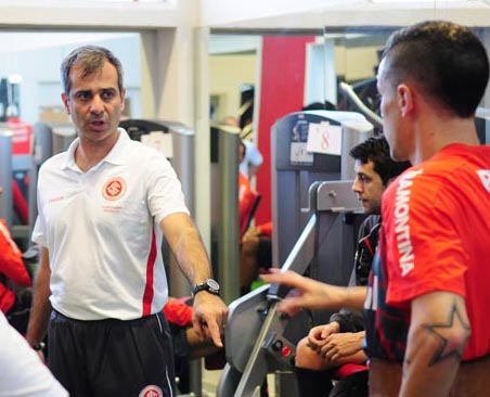 No detalhe, Fábio Mahseredjian na sala de musculação do Inter