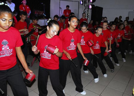 Mas o que realmente chamou a atenção foi braço social do consulado de Esteio. Os colorados da cidade apoiam o Centro de Formação Tereza Verzeri com ações e arrecadações que visam a promoção dos jovens. Além do convite os torcedores levaram quilos de alimento não perecível para doação. Após o cerimonial, os jovens fizeram uma linda apresentação com instrumentos percussivos, o famoso “Som na Lata”.