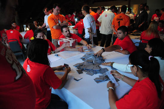 Seis mesas com cinco funcionários em cada uma para contar os votos nas cédulas enviadas por correspondência. Assim está sendo feita a apuração no Centro de Eventos do Beira-Rio. Logo mais, o torcedor do Internacional conhecerá o novo presidente do Clube para o biênio 2010-2011 e os 165 novos conselheiros eleitos para o Conselho Deliberativo. O anúncio será feito no ginásio Gigantinho.
