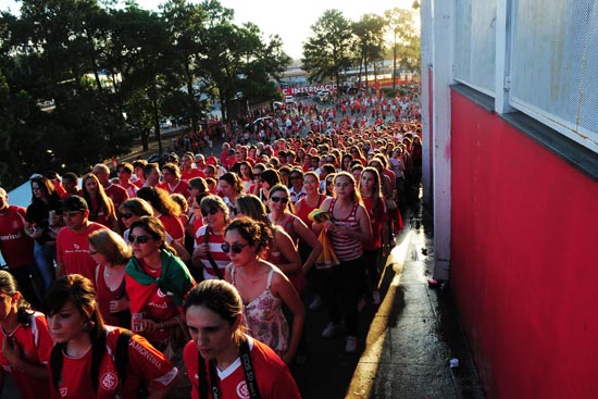 Multidão colorada acessa as arquibancadas superiores do Beira-Rio