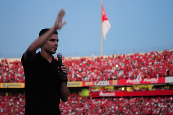 O cantor Thedy Corrêa, do Nenhum de Nós, foi o mestre de cerimônia. Inflamou a torcida e, na hora de chamar os jogadores, que aguardavam quietos na boca do túnel do vestiário, a festa foi extraordinária. Vibração, alegria e reconhecimento contagiavam cada atleta no meio do campo do Beira-Rio. O capitão Bolívar tomou o microfone e foi o porta-voz do grupo: “Daremos a vida neste Mundial e faremos de tudo para voltar para cá com este título, podem ter certeza”.