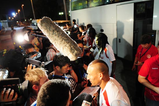 Cerca de 40 repórteres acompanharam o primeiro treino do Inter em Abu Dhabi. Os brasileiros eram a grande maioria, mas também havia profissionais japoneses e árabes interessados nas entrevistas dos jogadores colorados, que tiveram contato com a imprensa antes da atividade. O sistema utilizado pela Assessoria de Comunicação do Inter foi o de zona mista, no mesmo molde da Copa do Mundo.
