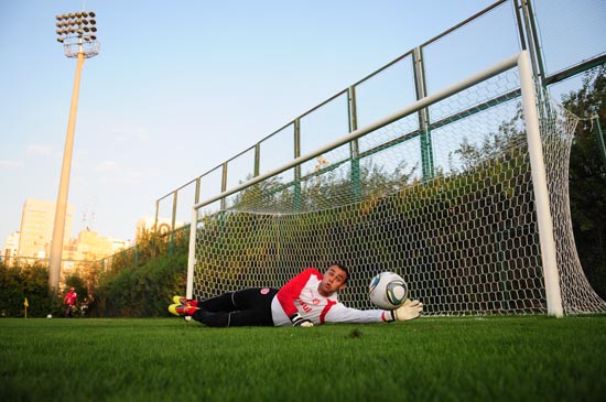 Renan se atira para espalmar a bola em treinamento do Inter