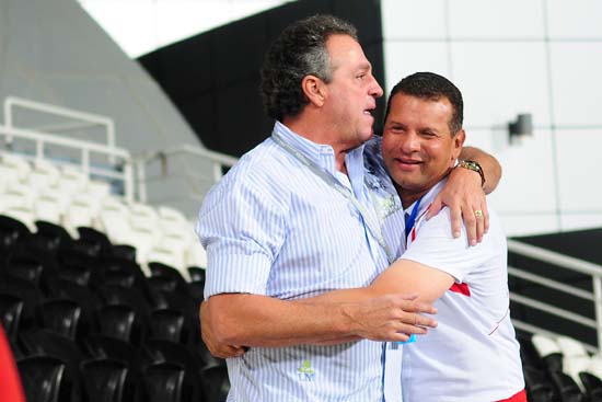 Abel Braga conversa com D'Alessandor no intervalo do jogo Mazembe x Pachuca