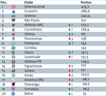 A edição atualizada do Ranking do site Olheiros.net, que trata especialmente do assunto 'categorias de base', segue apontando o Internacional como o melhor do Brasil. O Colorado soma 413 pontos, seguido pelo Cruzeiro, com 286. São mais de 120 de diferença para o segundo colocado. Nas categorias Inter B, júnior, juvenil e infantil, por exemplo, o Inter contabilizou dez taças no ano de 2010, com destaque para a conquista de forma invicta da primeira edição do Campeonato Brasileiro Sub-23 e para a Copa Nike de Futebol Infantil (Etapa Nacional).