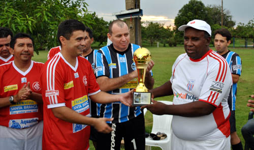 Caçapava (D) foi homenageado comm um troféu após a realização de um Gre-Nal no Piauí