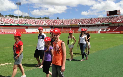 Turistas de Manaus (AM) e Toledo (PR) visitaram o gramado do Beira-Rio usando os capacetes de segurança