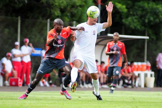 Augusto tenta a jogada pela direita: volante se movimentou bastante no primeiro tempo