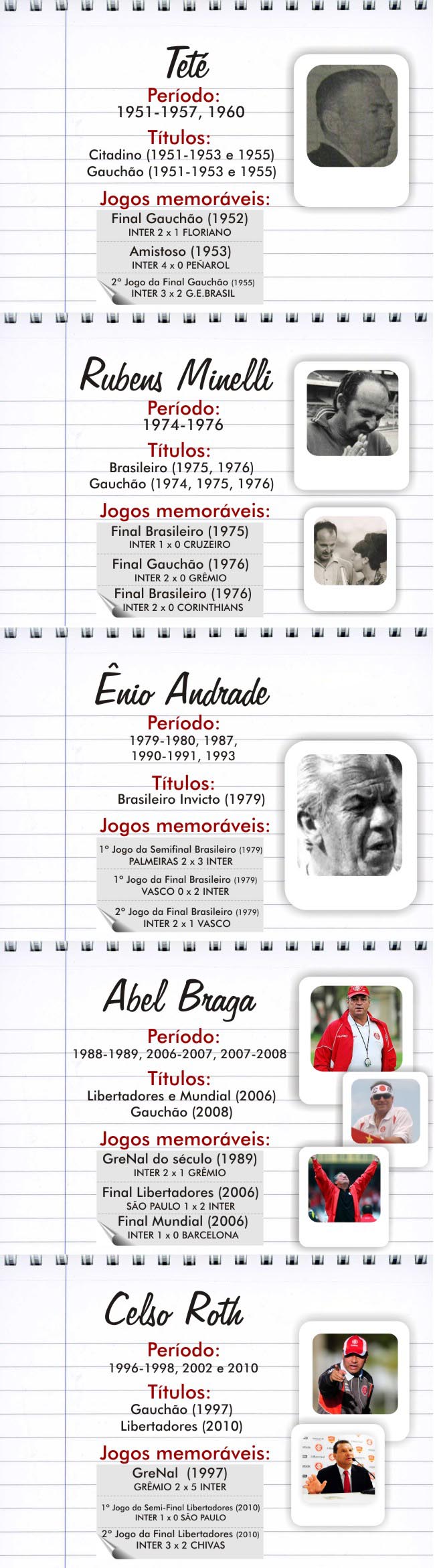 Confira abaixo alguns dos treinadores que marcaram história no Inter: