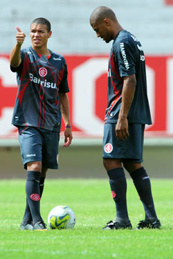 O treino foi uma espécie de coletivo, em que o treinador colorado o paralisava constantemente, buscando acertar os detalhes. Em seguida, foram exercitadas as cobranças de falta, em que Marquinhos e Guto (foto ao lado) assumiram o papel de batedores.