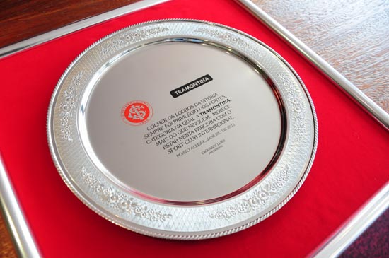 Inter ofereceu uma placa à Tramontina na qual celebrou a parceria que já dura cinco anos