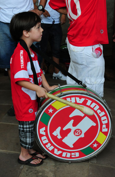 Pequeno torcedor, com o bumbo da torcida Guarda Popular, ajudou a mostrar a força e paixão dos colorados