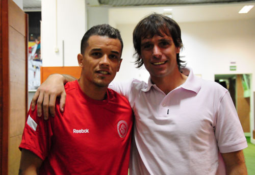Já no vestiário do time profissional no Beira-Rio, Cavenaghi (D) finalmente reencontrou o antigo amigo D'Alessandro