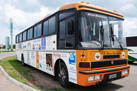 Dois ônibus conduzem a garotada para os treinos e jogos