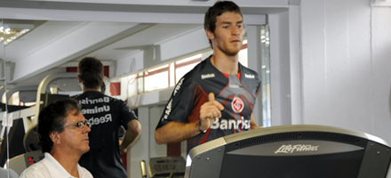 O jogador esteve na tarde desta segunda-feira no Beira-Rio e já vestiu o fardamento de treino. O jogador argentino chegou por volta das 17h no vestiário profissional do Gigante e foi submetido a exames médicos e testes físicos. Mario Bolatti correu na esteira e teve uma pequena amostra de sangue colhida pelo médico Luiz Crescente. Também teve o percentual de gordura corporal medido. “São testes funcionais, os mesmos que fazemos quando os jogadores se apresentam para a pré-temporada”, explica Crescente.