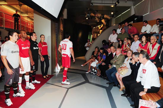 O Internacional inovou mais uma vez e utilizou as instalações do Museu, localizado no Beira-Rio, para apresentar os novos uniformes, na manhã desta quinta-feira (10/2). Os convidados e jornalistas assistiram a vídeos institucionais da Reebok e depois conheceram um pouco do local que abriga a história colorada. Depois, já devidamente instalados na Arena (um conjunto de arquibancadas existente no Museu), puderam acompanhar ao vivo e em telões o desfile que apresentou as novas peças.