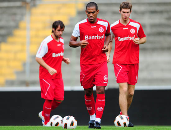 A delegação colorada viajou para o Equador com os novos uniformes, lançados na última quinta-feira, na bagagem. O Inter estreará a nova camisa de jogo diante do Emelec, mas no treino desta tarde os jogadores já vestiram os novos fardamentos de treino, que sofreram diversas modificações em relação ao anterior. Predominantemente na cor vermelha e com detalhes brancos, o uniforme agora h traz as marcas dos patrocinadores Banrisul, Unimed e TIM destacados no verso da camisa.