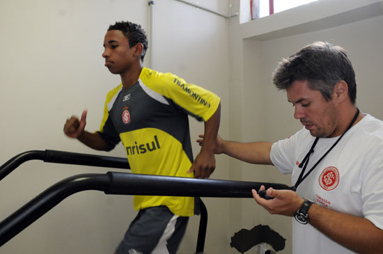 Lateral Tinga no teste físico orientado pelo fisiologista do Clube, Felipe Irala
