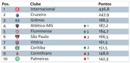 A atualização deste mês de março do Ranking do site Olheiros.net, que trata das categorias de base dos clubes de futebol do Brasil, continua marcando o Internacional como líder da lista, mas agora com uma distância maior para o segundo colocado, o Cruzeiro. O que era mais de 120 pontos de diferença agora chega a quase 200 pontos em relação aos mineiros. Nada de se surpreender para o Clube que iniciou o ano (janeiro) dando show, conquistando seis competições das oito que disputou, com destaques para a Copa Votorantim (infantil), Copa Santiago (juvenil) e a 1ª Copa Rio Preto (juvenil).
