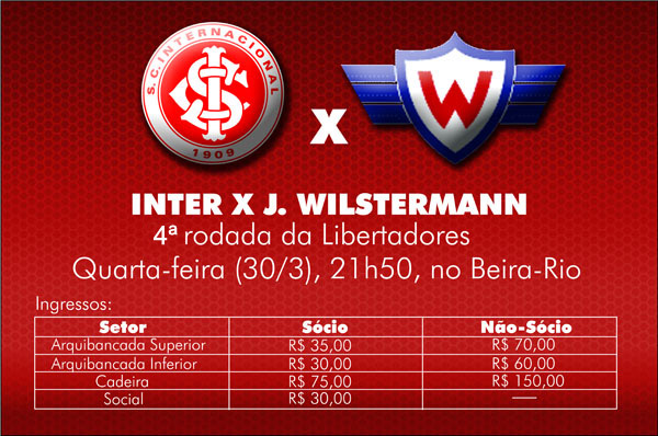 Valores dos ingressos para Inter x Jorge Wilstermann