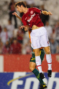 A superioridade do Inter era visível. A equipe colorada jogava fácil. Aos 17min, Kleber pegou rebote fora da área e soltou a bomba. João Paulo meteu a cabeça na bola e a mandou pela linha de fundo. Quatro minutos depois, Oscar e Zé Roberto tabelaram pelo meio. O camisa 11 avançou sozinho e chutou cruzado para fora.