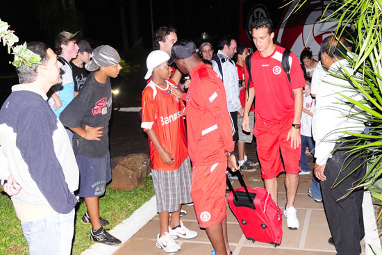 A delegação do Internacional chegou na noite desta sexta-feira à cidade de Lajeado, no interior gaúcho, com uma bela recepção dos torcedores colorados. O time tem como adversário o Lajeadense, segundo colocado do seu grupo, em partida válida pela sexta rodada da Taça Farroupilha (2º turno do Gauchão). O jogo ocorre às 18h30 deste sábado, no estádio Florestal.