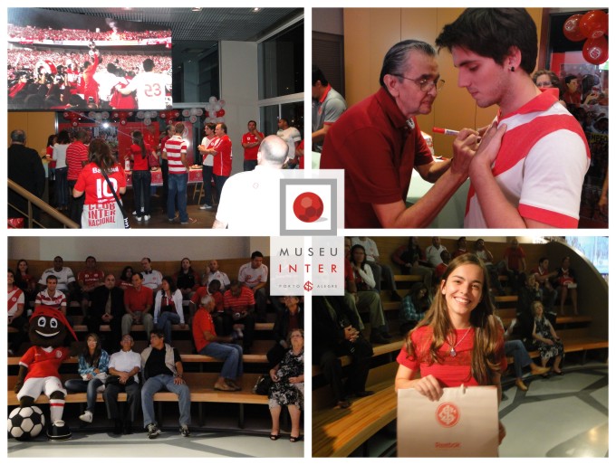 Foi realizada a esperada transmissão do jogo Jaguares x Internacional no Museu do Inter. Através de dois telões Full HD com mais de 150 polegadas localizados na Arena do Museu, os sócios sorteados tiveram a oportunidade de assistir ao jogo ao lado dos nossos craques do passado: Manga, Larry de Faria, Milton Vergara e Luizinho. No intervalo do jogo, foram sorteados kits com camisetas oficiais do Internacional e produtos do Museu. Os torcedores também puderam desfrutar da nova atração, a “Arquibancada Virtual”, que foi inaugurada na terça, onde comemoraram novamente os maiores gols colorados e capturaram sua imagem que foi projetada em uma tela ao lado, estampando a sua torcida para todo colorado apreciar.
