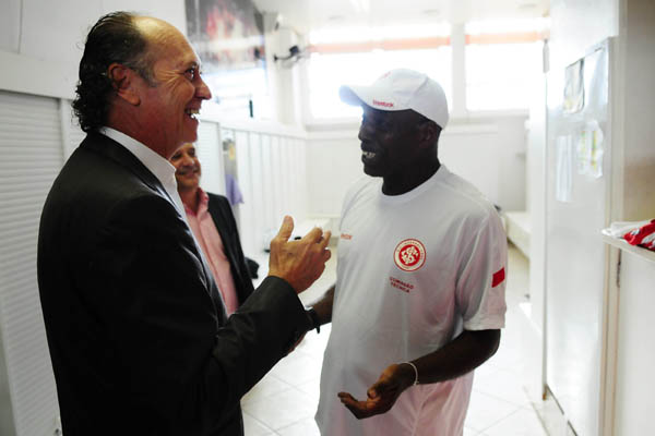 Também cumprimentou outros funcionários do Clube, muitos deles que nem tiveram a sorte de vê-lo atuar, mas que sabem muito bem da sua importância na história de 102 anos do Colorado. Em tempo: Falcão foi tricampeão brasileiro (75, 76 e 79) e cinco vezes campeão estadual (73, 74, 75, 76 e 78). Também treinou o time que disputou o Campeonato Brasileiro em 1993.