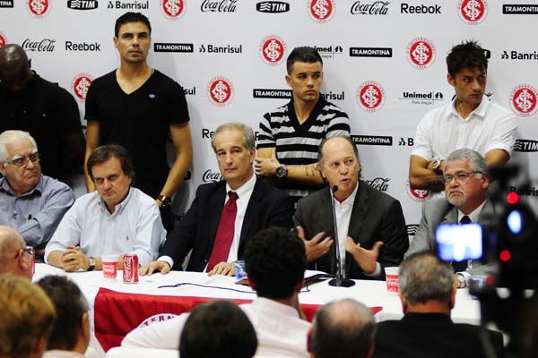 Exatamente às 17h45, a coletiva de imprensa teve início no vestiário profissional. Convidados pelo próprio Falcão, Tinga, Rafael Sobis, D'Alessandro, Bolívar e Kleber acompanharam a apresentação junto a ele na bancada. "A presença destas lideranças já dá um pouco a ideia de coletividade que quero dar o time. Só de maneira unida é possível alcançar os objetivos", disse Falcão