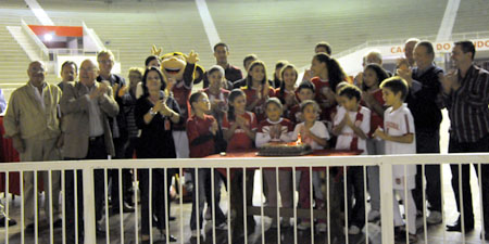 Na sequência, todos cantaram 'Parabéns a Você' para o Campeão de Tudo. Ao final da canção, Gelson Pires fez um discurso emocionante no qual declarou o amor ao Internacional e elogiou o projeto: “Somente um Clube da grandeza do Internacional pode proporcionar uma atividade como esta. Tenho orgulho desse projeto e das pessoas que trabalham aqui”, destacou Pires.