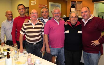 Da dir. para esq.: Newton Drummond, Roberto Melo, Gelson Pires, Cuca Lima, Roberto Siegmann, Reinaldo Rech e Paulo Goldefun no jantar de confraternização, em Caxias do Sul