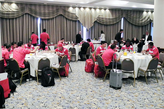 Assim que chegaram, jogadores foram para o lanche no hotel