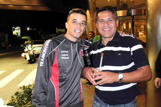 O treino já havia terminado e o ônibus com o grupo do Inter se dirigia ao hotel da concentração. Mas havia alguém especial esperando os atetas na frente do Sheraton, aqui em Montevidéu. Ex-jogador e ídolo de Internacional nos anos 80, o uruguaio Rubén Paz fez questão de desejar bom jogo para a equipe e rever os companheiros de Clube. Ele conseguiu mais que isso. Quando D'Alessandro desceu pelas escadas do ônibus e viu Paz, a emoção foi grande. O argentino saiu gritando 'Uruguai!' até cumprimentá-lo. Isso tudo porque D'Ale tem como seu maior ídolo justamente Rubén Paz.