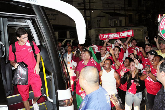 Não tem ruim para o Inter. Onde o time vai, lá está a torcida colorada levando seu incentivo incondicional para as arquibancadas. Na partida contra o Santos, o apoio começou antes mesmo de a bola rolar. Na saída para o estádio, dezenas de colorados se aglomeraram no saguão do hotel onde o Campeão de Tudo estava concentrado. Uma atmosfera muito positiva foi criada momentos antes da partida de estreia no Brasileirão. Leandro Damião e o técnico Falcão foram os mais assediados pelos torcedores, que tiraram muitas fotos e descolaram autógrafos dos seus ídolos.
