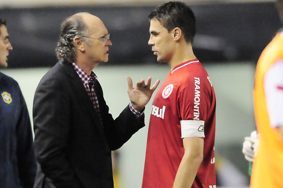 Paulo Roberto Falcão fala com capitão Bolívar: treinador não abdicou de atacar