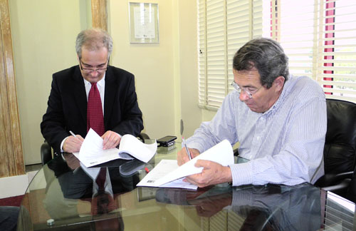 Giovanni Luigi e José Edgar Meurer assinando o convênio