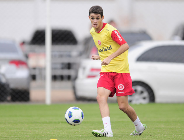 Meia-atacante Oscar em ação no treinamento que priorizou o plano ofensivo