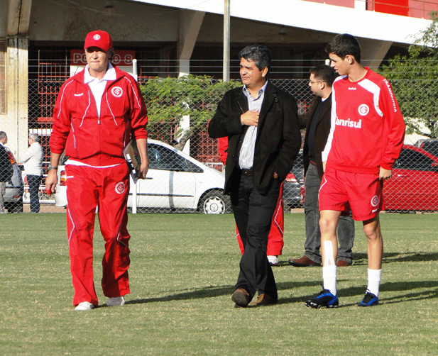 Ney Franco (C) no campo suplementar do Beira-Rio, acompanhado de Falcão (E) e Oscar (Foto: ClicRBS)