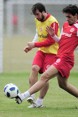 O time que treinou na manhã desta sexta deu indícios da escalação que deverá ser utilizada contra o América-MG: Renan; Nei, Bolívar, Rodrigo e Juan; Guiñazu, Tinga, Oscar e D'Alessandro; Cavenaghi (à esq. na foto) e Zé Roberto. Os reservas atuaram com Lauro; Glaydson, Índio, Moledo e Fabrício; Elton, Massari, Ricardo Goulart, Siloé; Alex e Gilberto.