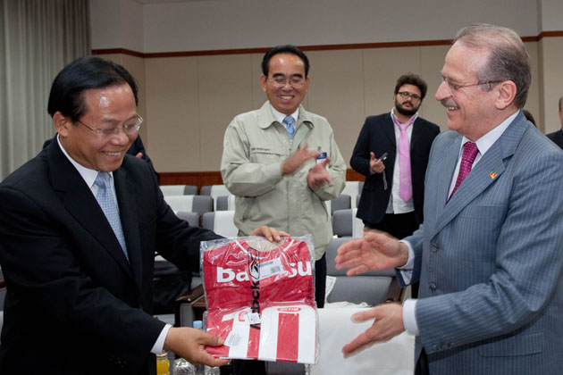 Em visita oficial à Coreia do Sul, o governador do Estado, Tarso Genro, divulgou o nome do Internacional em um de seus compromissos. Foi durante uma visita à montadora de automóveis Hyundai, em Asan, no sul de Seul, nesta sexta-feira (3/6), quando Genro ofereceu presentes aos representantes coreanos, entre eles uma camisa oficial do clube colorado. O momento foi registrado pela assessoria de comunicação do Governo.