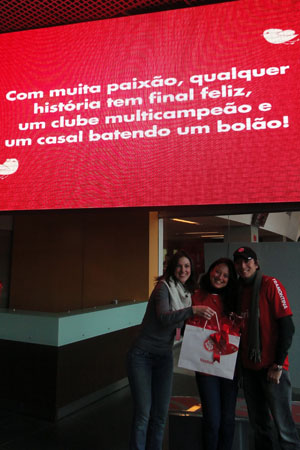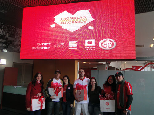 Os vencedores da promoção do Dia dos Namorados 'Você me deixa doidão' estiveram neste sábado (11/06) na entrega oficial dos prêmios no Museu do Inter. São eles: 1º lugar, Felipe Trindade Borges, 2º lugar, Eduardo Schitz, 3º lugar, Luciano Assanuma, e 4º lugar, Regina Brock. A gerente do museu, Mariana Rutenberg, presenteou os colorados.